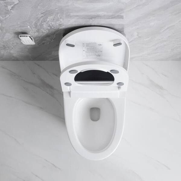 12 in. 1-piece 1.28/1.6 GPF Dual Flush Elongated Smart Toilet in White Bidet Built-in, Feet Sensor, Auto Open/Close Seat