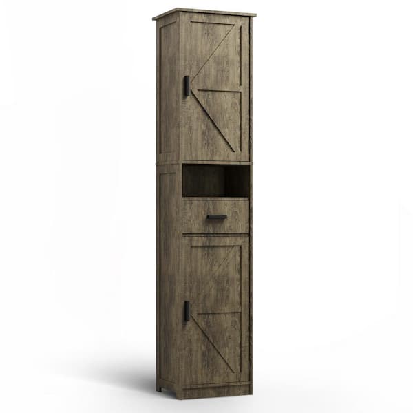 14.56 in. W x 11.22 in. D x 69.29 in. H Bathroom Gray Linen Cabinet