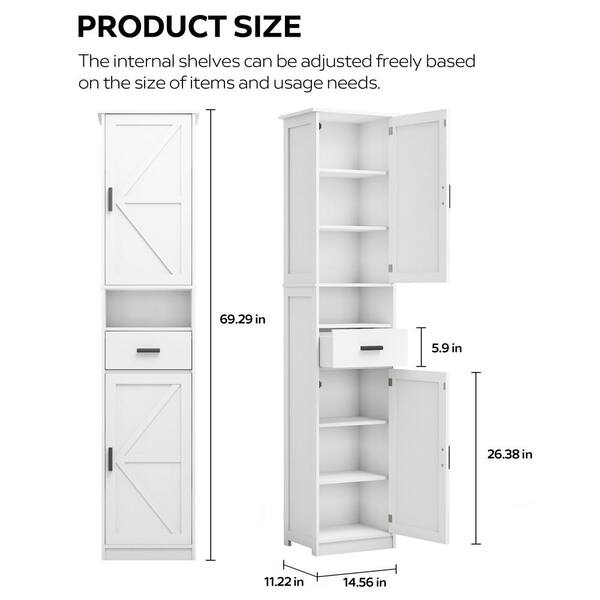 14.56 in. W x 11.22 in. D x 69.29 in. H Bathroom White Linen Cabinet