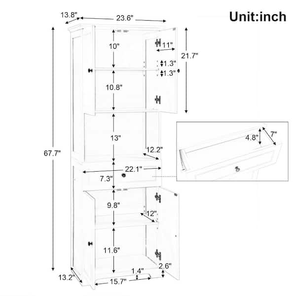 23.6 in. W x 13.8 in. D x 67.7 in. H Bathroom White Linen Cabinet