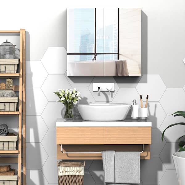 23.63 in. W x 21.63 in. H White Rectangular Steel Medicine Cabinet with Mirror, Double Doors