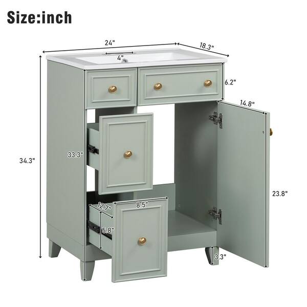 24 in. W x 18 in. D x 34 in. H Bathroom Green Linen Cabinet