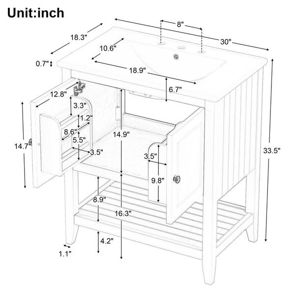 30 in. W x 18.3 in. D x 33.5 in. H Bathroom Gray Linen Cabinet