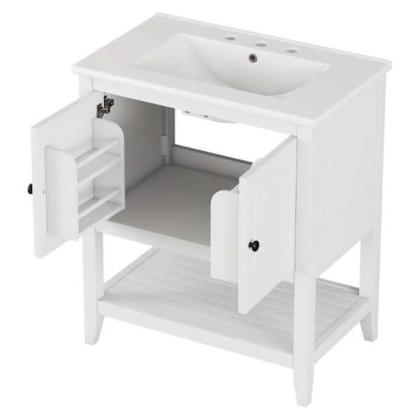 30 in. W x 18.3 in. D x 33.5 in. H Bathroom White Linen Cabinet