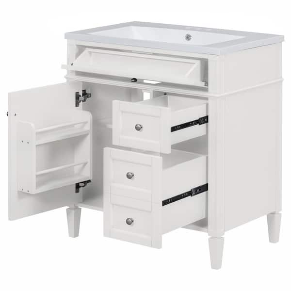 30 in. W x 18 in. D x 33 in. H Bathroom White Linen Cabinet