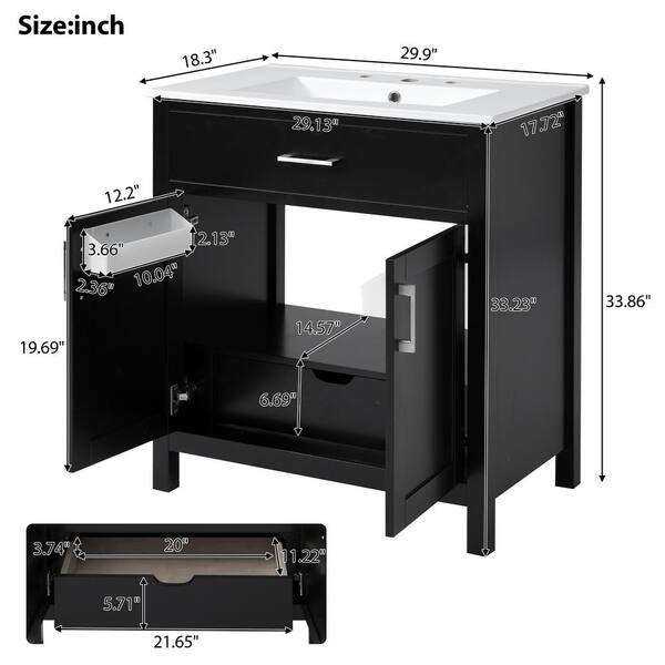 30 in. W x 18 in. D x 34 in. H Bathroom Black Linen Cabinet
