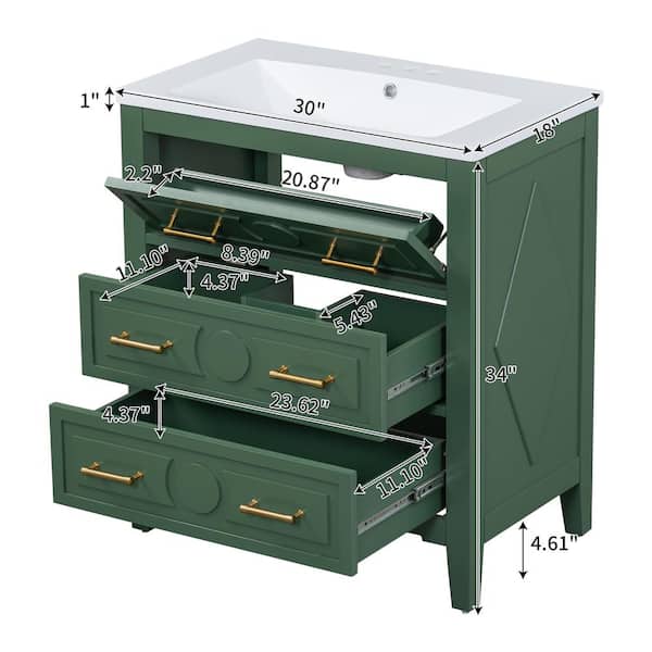 30 in. W x 18 in. D x 34 in. H Bathroom Green Linen Cabinet