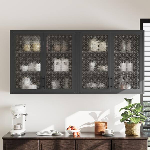 31.5 in. W x 11.8 in. D x 30 in. H Bathroom Storage Wall Cabinet in Black with Hazy Glass Doors, 2 Adjustable Shelves