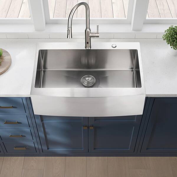 33 in. Farmhouse Single Bowl 16 Gauge Stainless Steel Kitchen Sink with Bottom Grid and Strainer