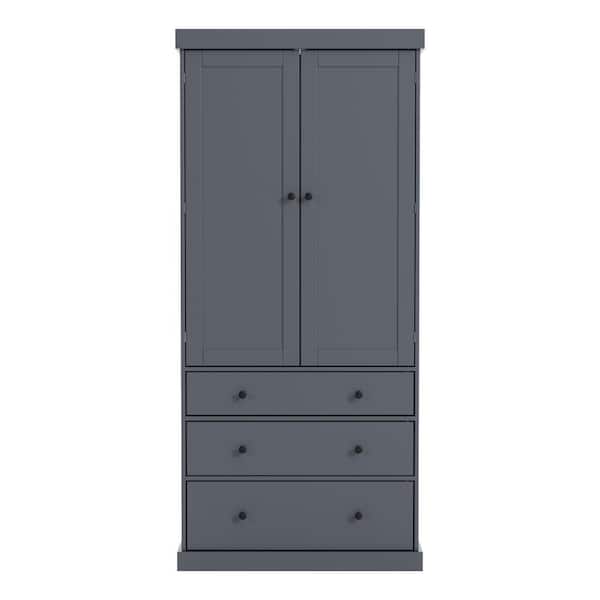 35 in. W x 17.7 in. D x 77 in. H Gray Linen Cabinet with 3 Adjustable Shelves, 8 Door Shelves, 3 Drawers
