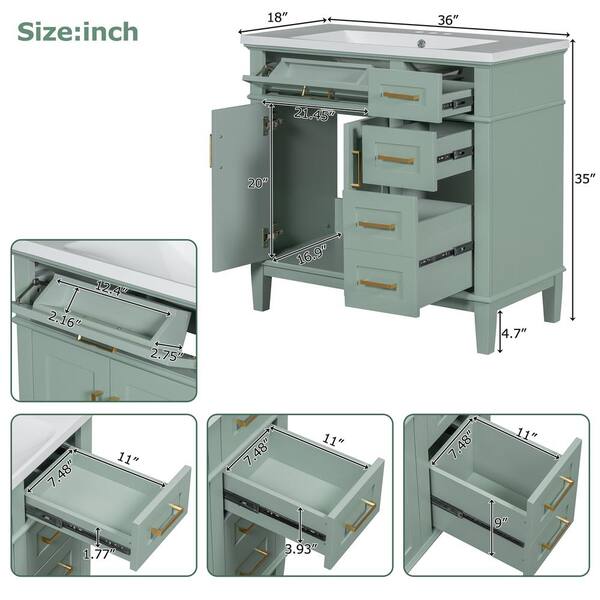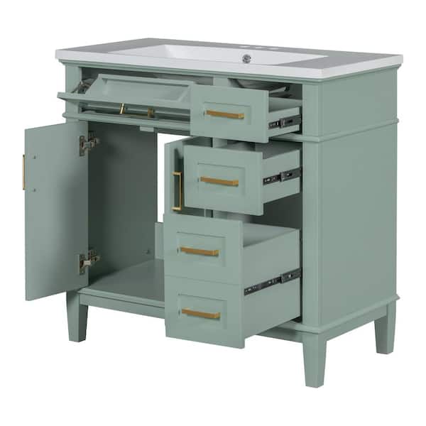 36 in. D x 18 in. W x 35 in. H Bathroom Green Linen Cabinet