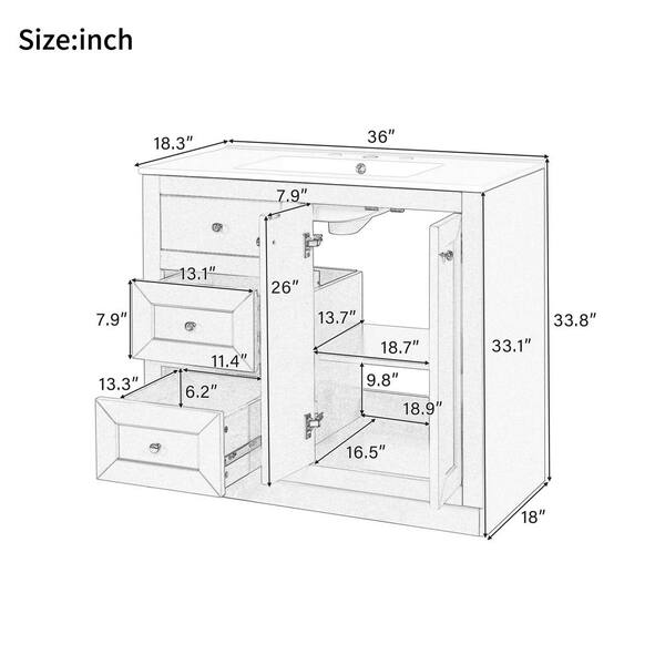 36 in. W x 18.3 in. D x 33.8 in. H Bathroom Blue Linen Cabinet