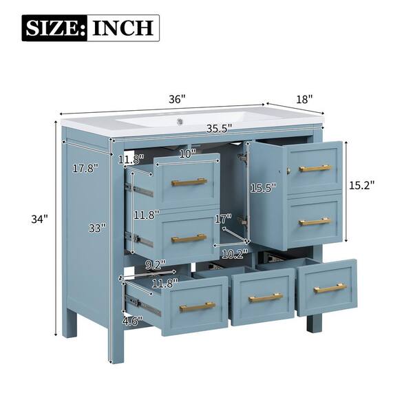 36 in. W x 18 in. D x 34 in. H Bathroom Blue Linen Cabinet
