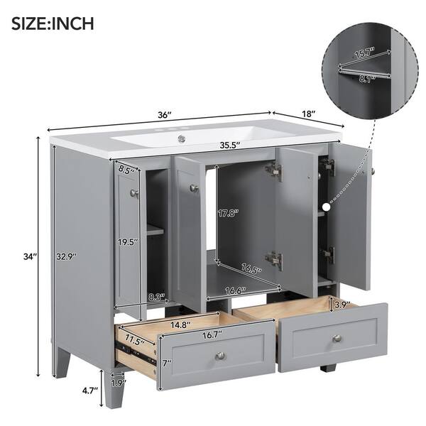 36 in. W x 18 in. D x 34 in. H Bathroom Gray Linen Cabinet
