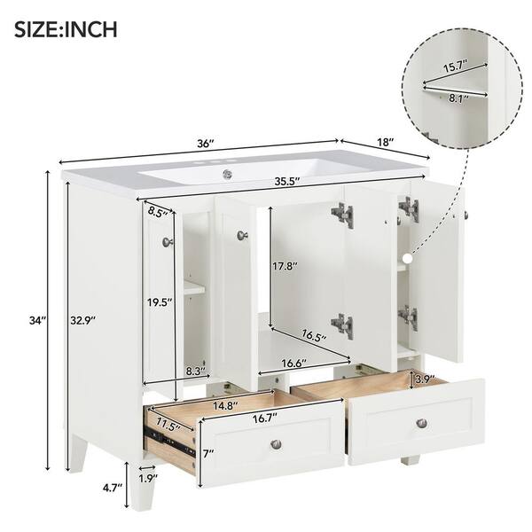 36 in. W x 18 in. D x 34 in. H Bathroom White Linen Cabinet