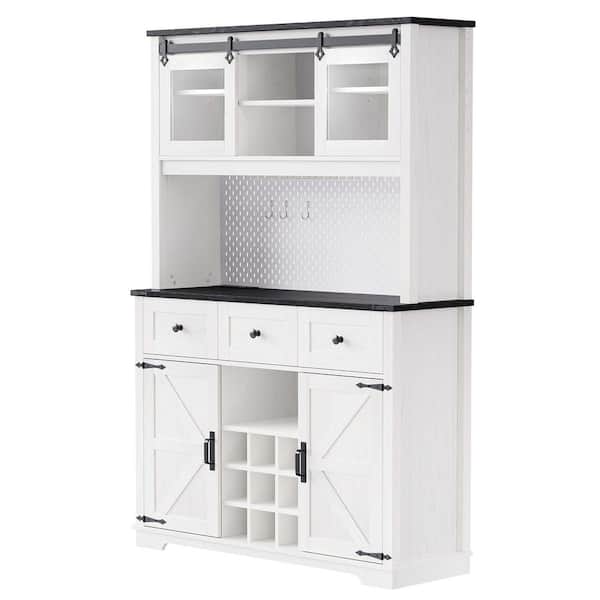 47.25 in. W x 14.25 in. D x 71 in. H White Oak Linen Cabinet with Internal Storage Rack,Hutch,Sliding Door,Power Outlet