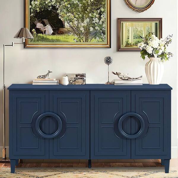 58.9 in. W x 16.3 in. D x 31.7 in. H Navy Blue Linen Cabinet with Four Doors