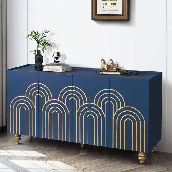 59.8 in. W x 15.8 in. D x 32 in. H Navy Blue Linen Cabinet with Strict Lines, 4 Doors, Adjustable Shelves