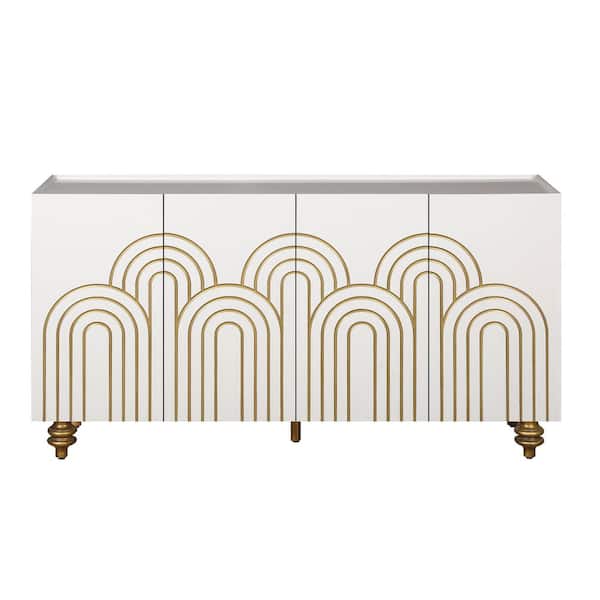 59.8 in. W x 15.8 in. D x 32 in. H White Linen Cabinet with Strict Lines, 4 Doors, Adjustable Shelves