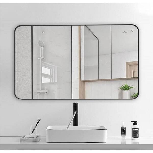 60 in. W x 36 in. H Rectangular Framed Wall Bathroom Vanity Mirror in Black