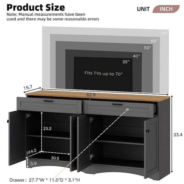 62.9 in. W x 15.7 in. D x 33.4 in. H Bathroom Gray Linen Cabinet
