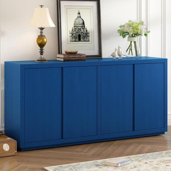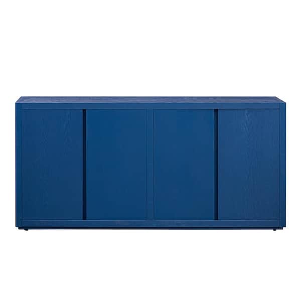 63.1 in. W x 15.7 in. D x 30.3 in. H Navy Blue Linen Cabinet with 4-Door, Ash Veneer