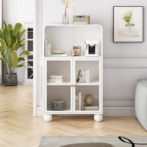 White Metal Pantry Organizer, Freestanding Display Storage Cabinet with Glass Door and Shelves