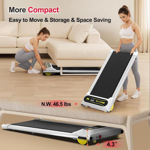 White Portable Walking Pad Running Machine, Treadmill with LED Display and 12-Preset Programs, 2.25HP