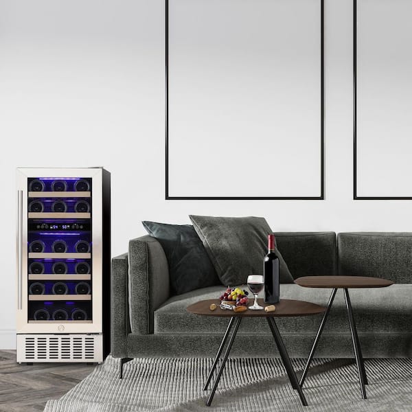 15 in. Dual Zone 28 Wine Bottles and 66 Can Beverage and Wine Cooler in Stainless Steel Silver
