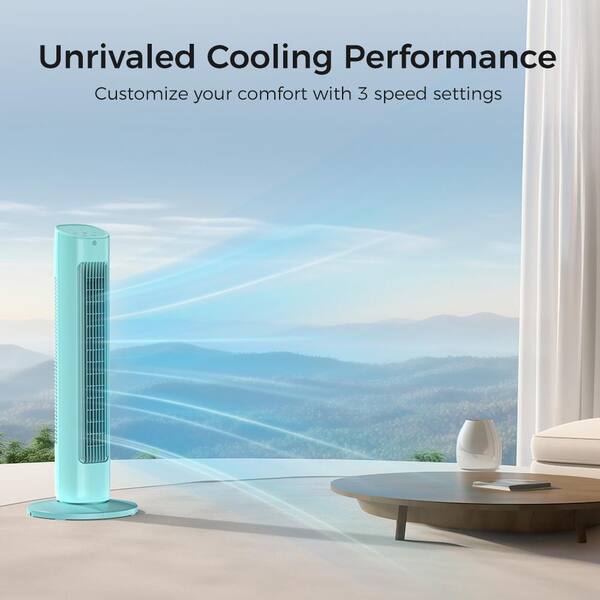 30.71 in. 3-Speed 11.81 in. W Oscillating Tower Fan in Green with Digital Display, Auto Mode, Timer and Remote Control