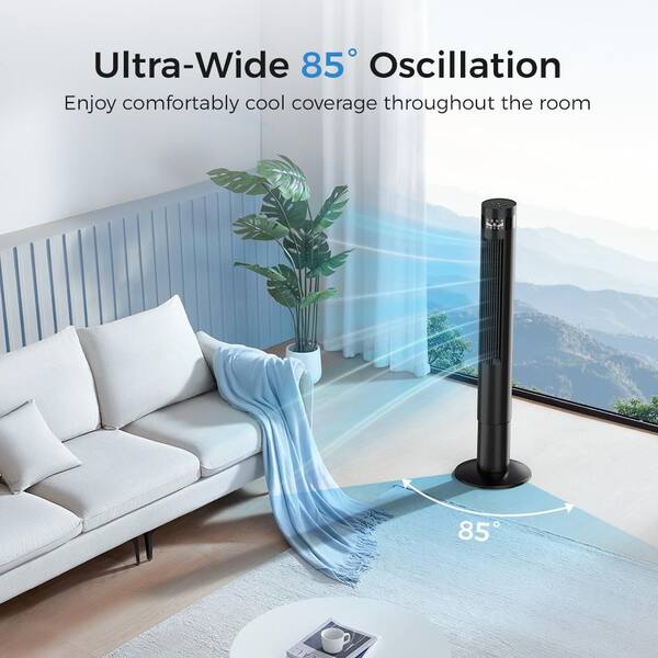43.31 in. 3-Speed 11.81 in W Tower Fan in Black 85° Oscillating Fan with Digital Display Timer and Remote Control