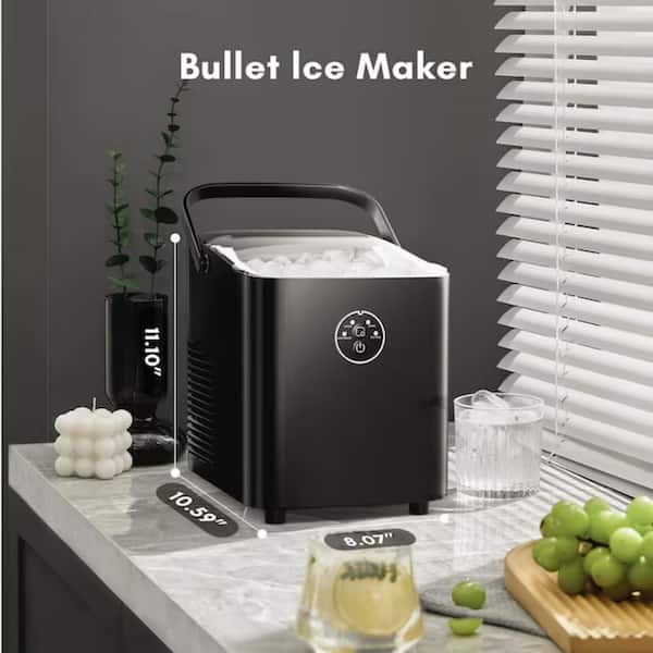 8.07 in. 26 lbs. Portable Bullet Ice Maker, Countertop Ice Maker in Black