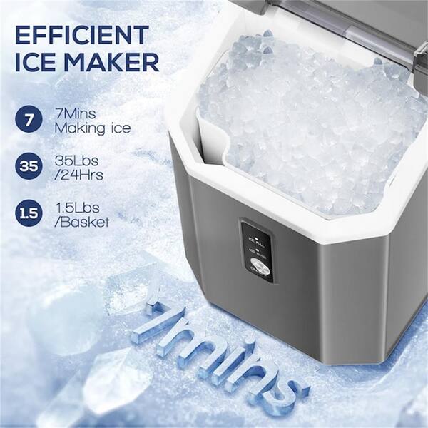 8.66 in. 33 lbs. Portable Countertop Nugget and Pebble Ice Maker, Grey