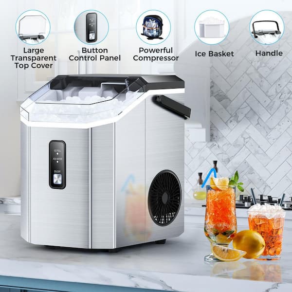 9.45 in. 44 lbs. Countertop or Portable Nugget/Pebble Ice Maker in Silver