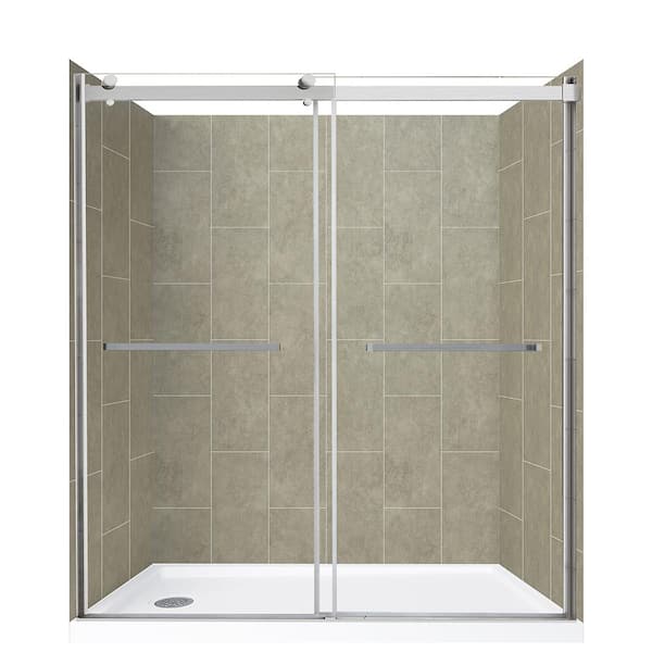 60 in. L x 30 in. W x 78 in. H Left Drain Alcove Shower Stall Kit in Shale and Brushed Nickel Hardware