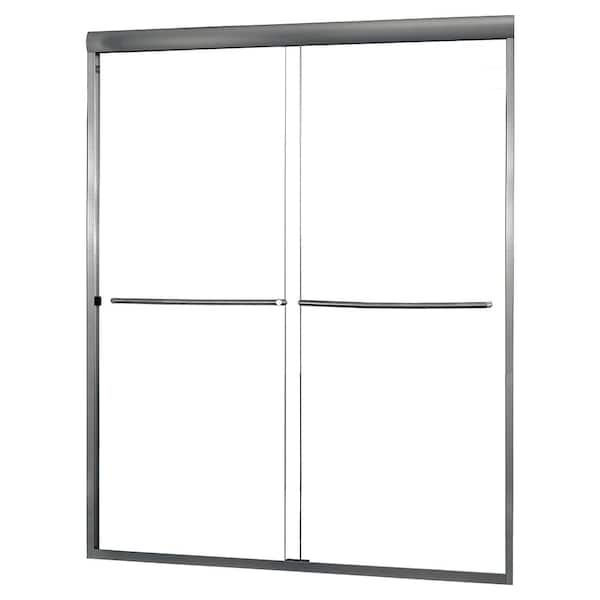 Cove 42 in. W x 65 in. H. Sliding Frameless Shower Door in Brushed Nickel with 1/4 in. Clear Glass