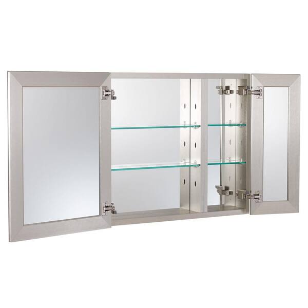 Reflections 30 in. W x 26 in. H Rectangular Aluminum Double Door Medicine Cabinet with Mirror in Brushed Nickel