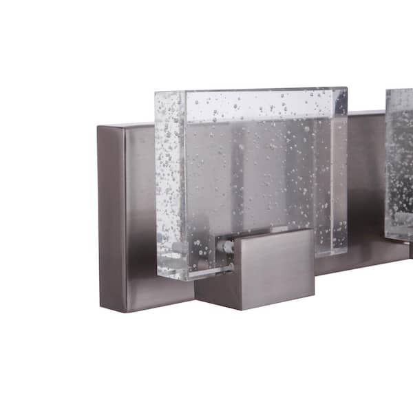 Alamere 20.88 in. 3-Light Brushed Polished Nickel Finish LED Vanity Light Bar with Clear Seeded Glass