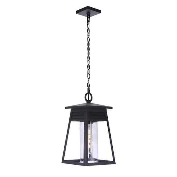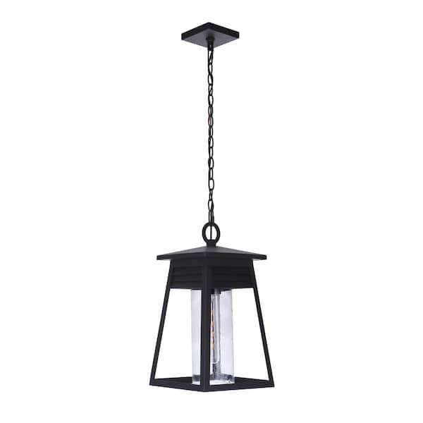Becca 18.25 in. 1-Light Textured Black Finish Dimmable Outdoor Pendant Light with Seeded Glass, No Bulb Included
