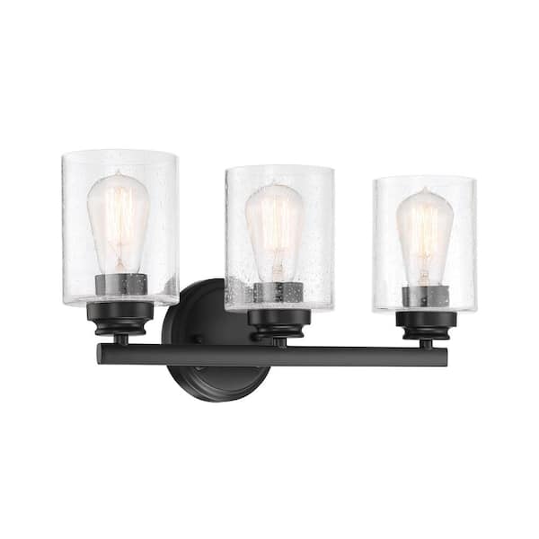 Bolden 18 in. 3-Light Flat Black Finish Vanity Light with Seeded Glass