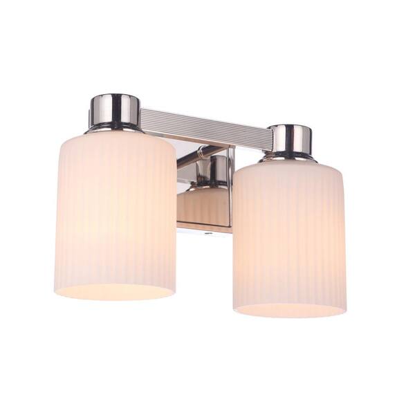 Bretton 12.38 in. 2-Light Polished Nickel Finish Vanity Light with White Frosted Glass Shade