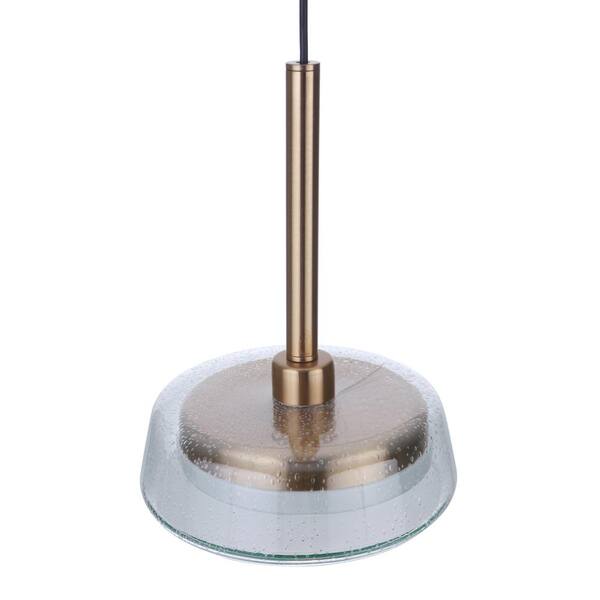 Centric 10 in. 10-Watt 1-Light Satin Brass Finish Integrated LED Dining/Kitchen Pendant-Light with Seeded Glass