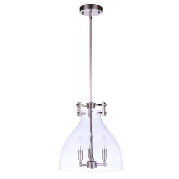 Chardonnay 60-Watt 3-Light Brushed Nickel Finish Dining/Kitchen Island Pendant with Clear Glass Shade, No Bulbs Included