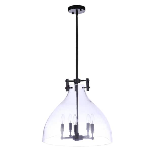 Chardonnay 60-Watt 5-Light Flat Black Finish Dining/Kitchen Island Pendant w/ Clear Glass Shade No Bulbs Included