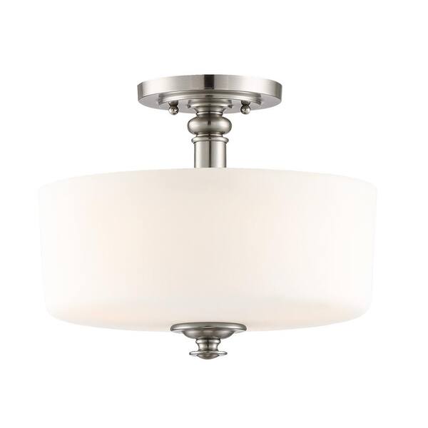 Dardyn 13in. 3-Light Brushed Nickel Finish Transitional Convertible Semi Flush Mount Ceiling Light w/White Frost Glass