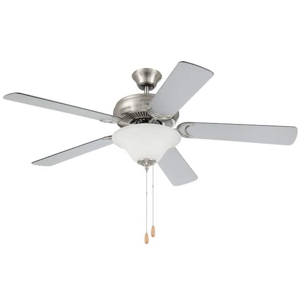 Decorator's Choice 52 in. Indoor Tri-Mount 3-Speed Motor Brushed Polished Nickel Finish Ceiling Fan with Bowl Light Kit