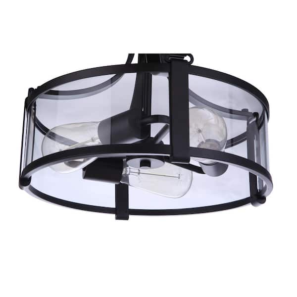 Elliot 13 in. 3-Light Flat Black Finish Transitional Semi Flush Mount Ceiling Light w/Clear Glass, No Bulbs Included