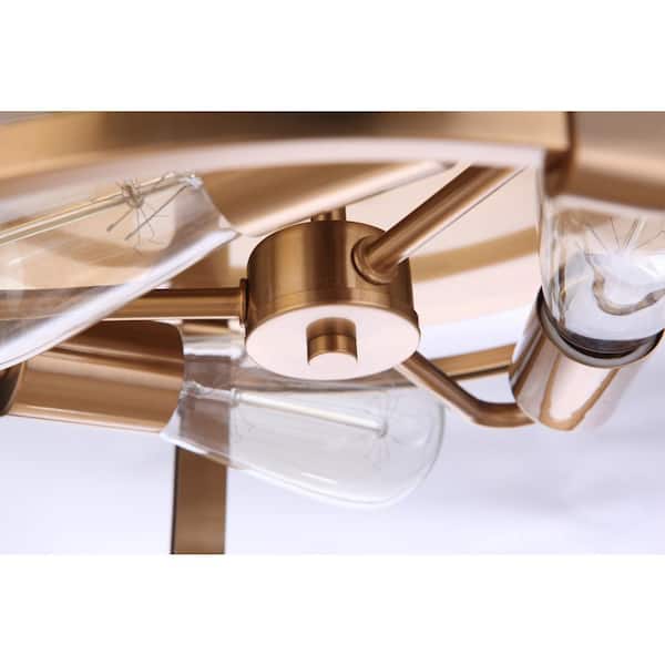 • Warm satin brass finish with clear glass shade