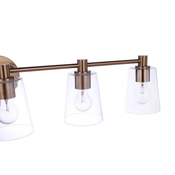 Emilio 42 in. 5-Light Satin Brass Finish Vanity Light with Clear Glass Shade