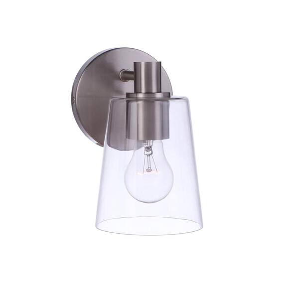 Emilio 8 in. 1 Light Brushed Polished Nickel Finish Wall Sconce with Clear Glass